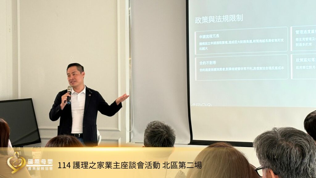 會中指出,產後護理機構正面臨少子化衝擊與多重經營壓力。包含:出生率下降導致客源減少、營運成本與薪資上漲、租金壓力沉重、削價競爭嚴重、人力招募困難及流動率高等問題。此外,冗長的設立審核流程與嚴格的衛生管理,也讓業者承受沉重的財務負擔與發展限制。