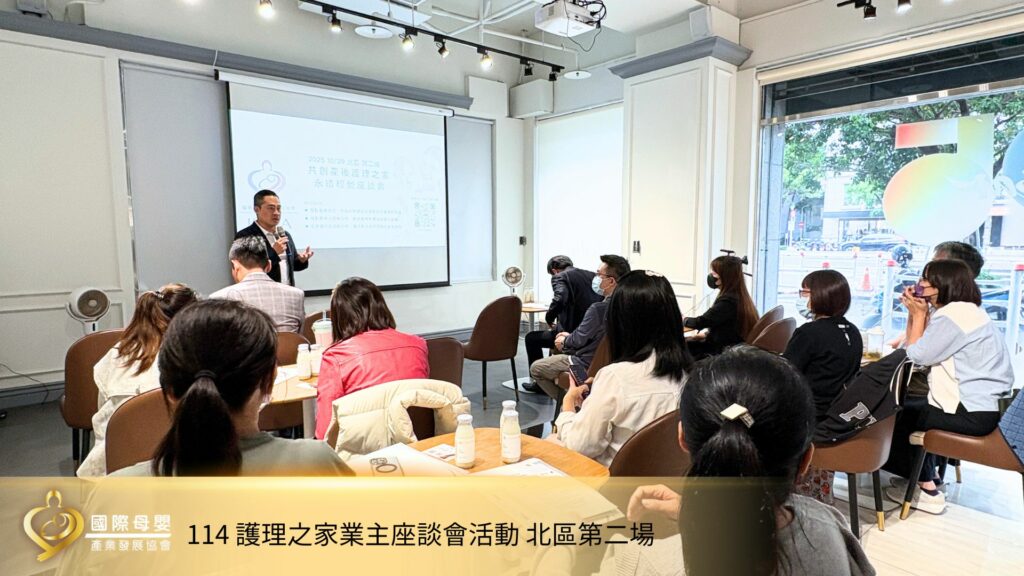 為推動產後護理產業的健康與永續發展,國際母嬰產業發展協會於10月15日及10月29日連續舉辦兩場「114年產後護理機構交流座談會」,邀集全台多家產後護理之家業主共同參與,針對產業現況、經營挑戰及政策訴求進行深入交流,期望凝聚共識並向政府部門提出具體建言,為台灣母嬰照護產業創造更友善的發展環境。接下來將繼續前進台灣中、南部,凝聚全台灣各地產後護理之家共識,致力提供全台灣的家庭更友善、永續的產後修復環境。